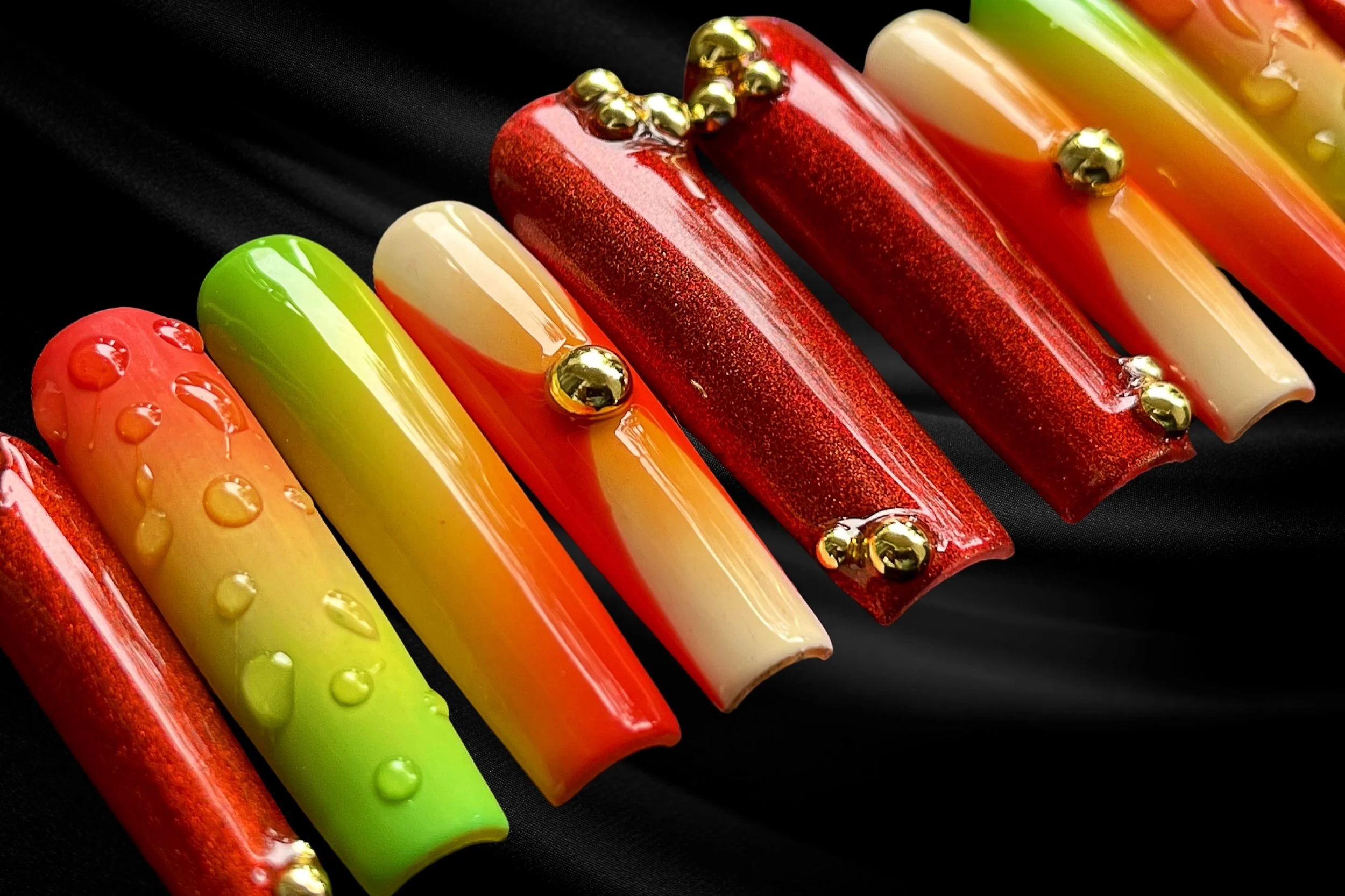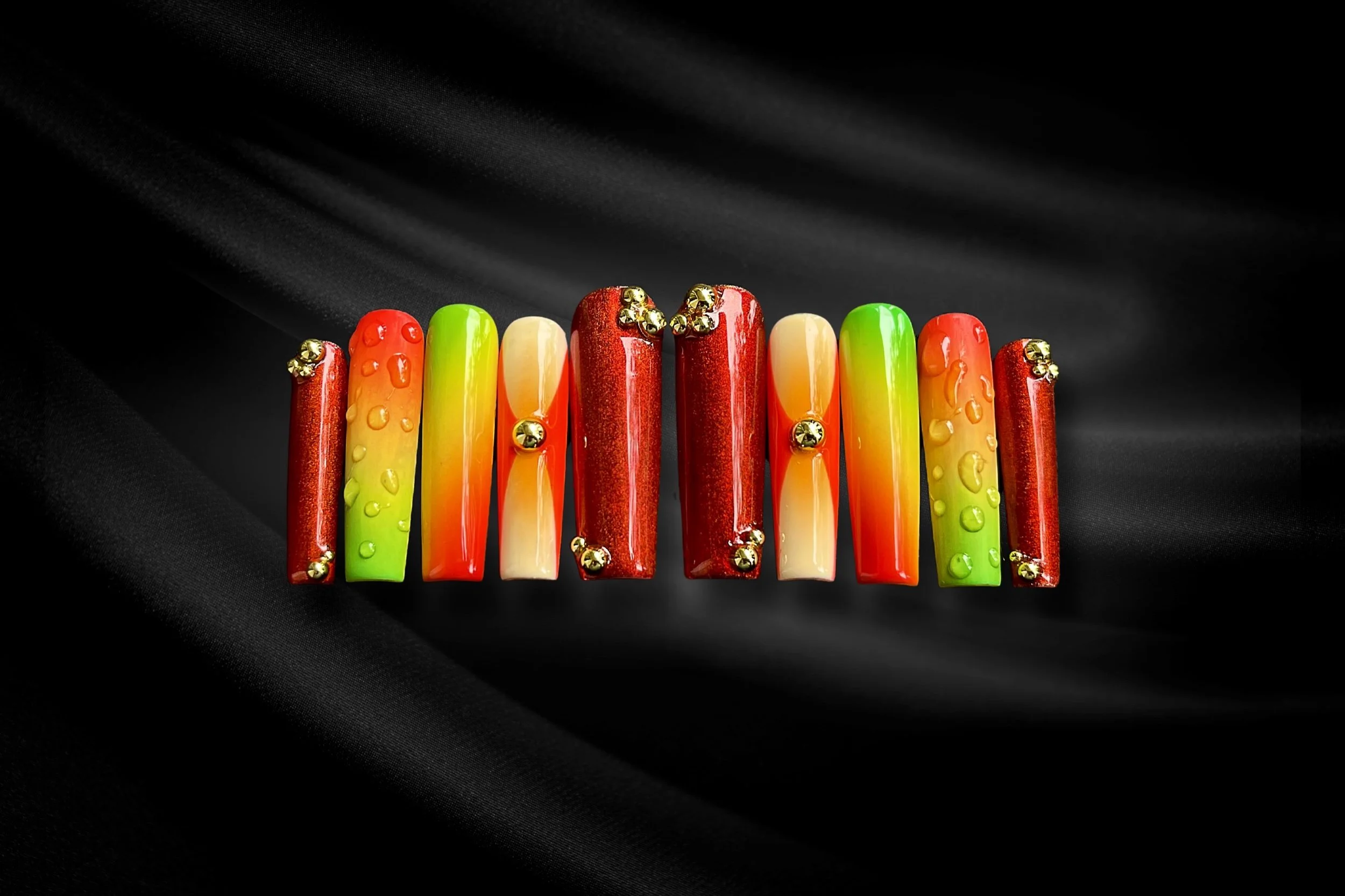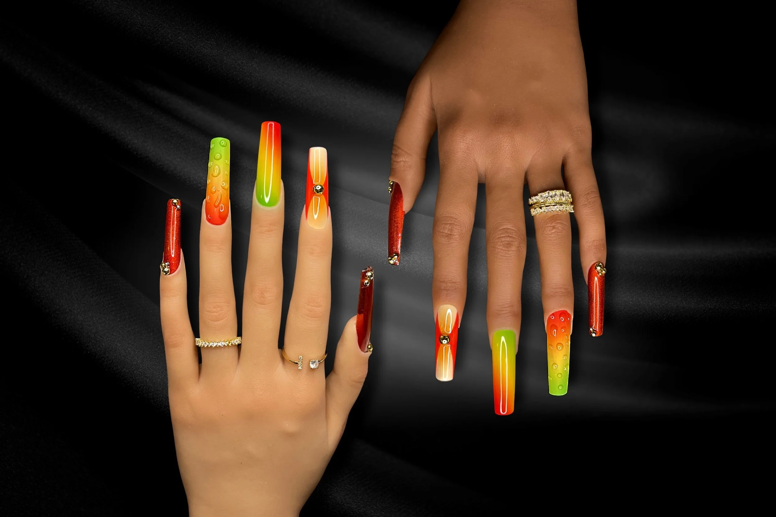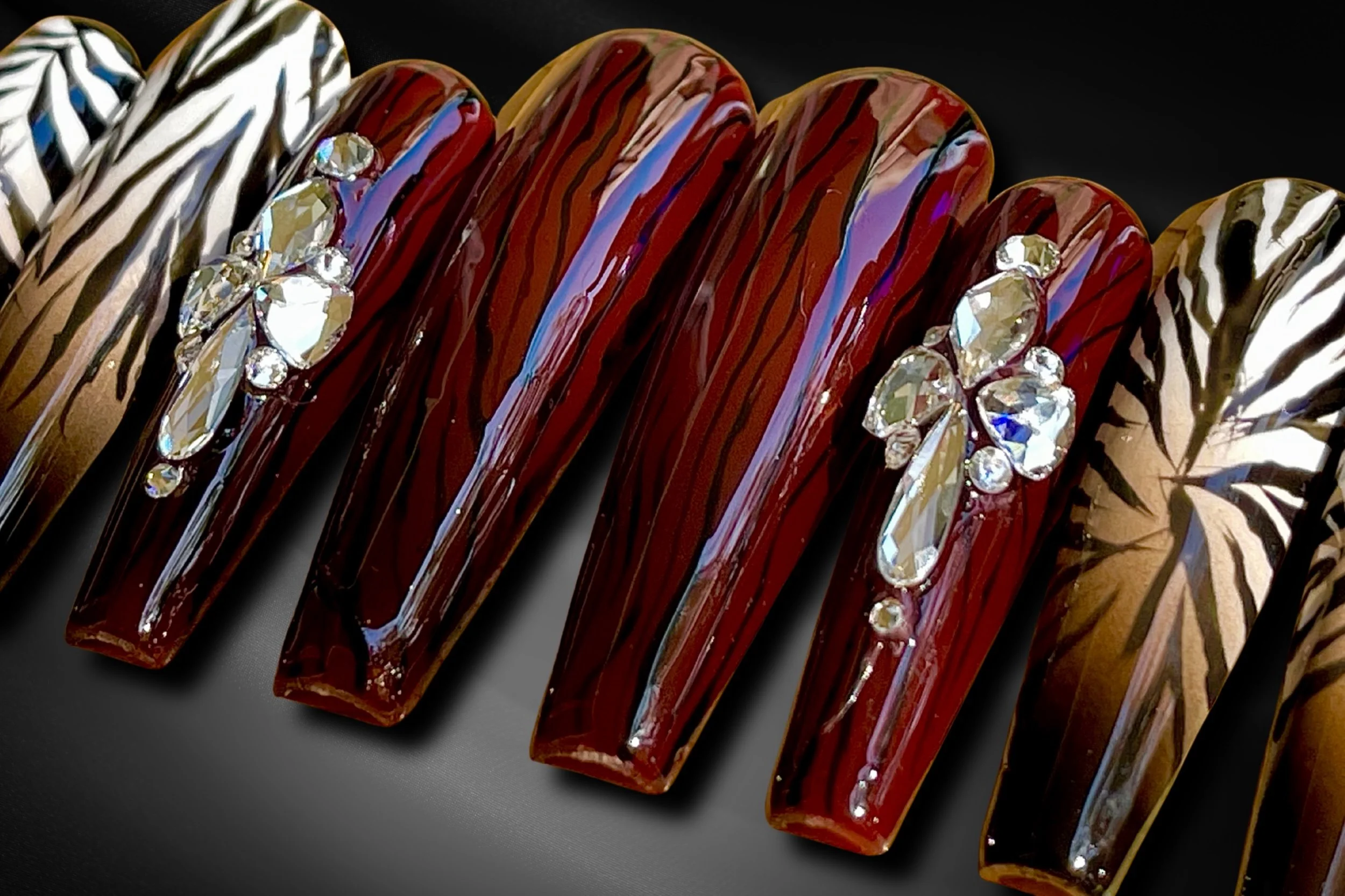 * Crystals may vary slightly in shape or color based on availability, but overall design and placement remain consistent.* Designs shown are featured on XXL length.